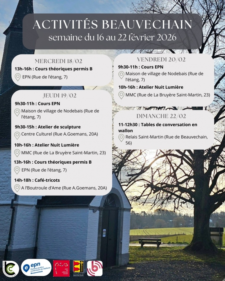 Le19 février 2026, de 18h à 20h30, dans la Salle du Conseil (Rue Le Brouc 2, 1357 Hélécine). Places limitées !