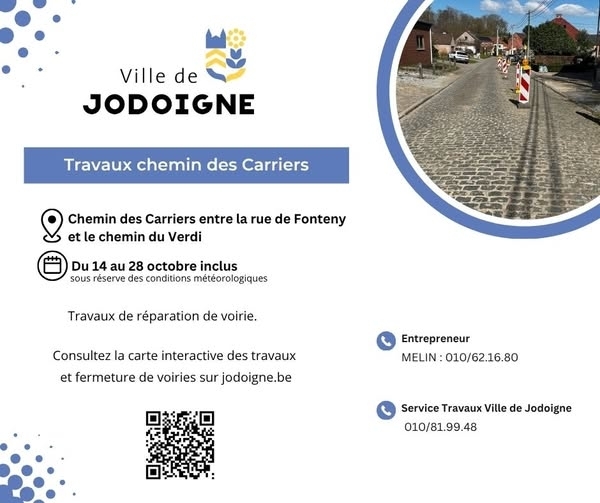 D'aujourd'hui au 28 octobre, des travaux de réparation de la voirie seront réalisés chemin des Carriers, entre la rue de Fonteny et le chemin du Verdi.