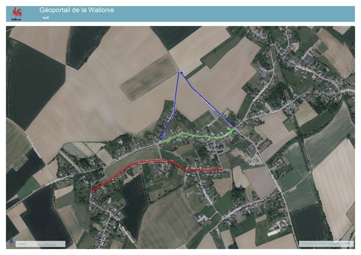 - La déviation en sens unique (à partir du carrefour du football) en direction de Glimes par le Vieux Chemin de Jodoigne & la Rue Belle Hôtesse (en bleu sur le plan) est maintenue jusqu’à ce mardi 09/12 .