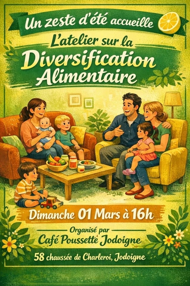 Ce 1er mars à 16 h, Un Zeste d'été, chaussée de charleroi 58, Jodoigne, Belgique accueille l’atelier sur la diversification alimentaire