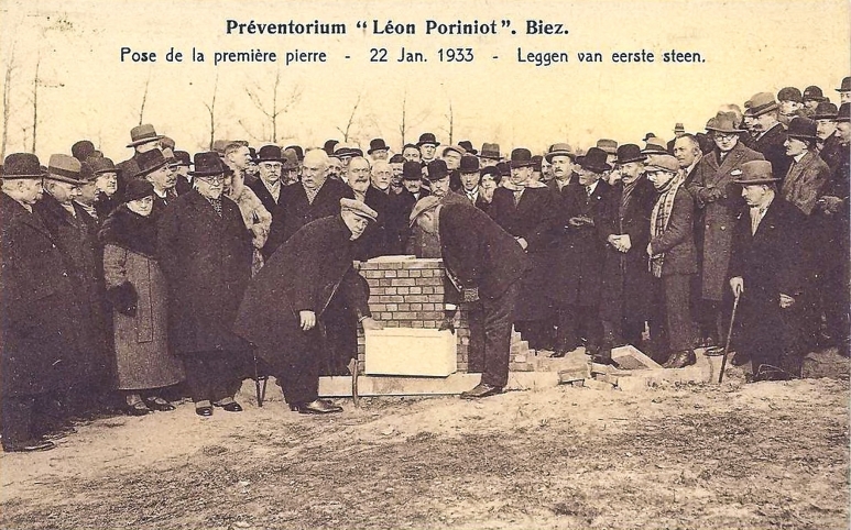 Le Préventorium Léon Poriniot fut édifié au début des années 1930 à Biez, hameau de la commune de Grez-Doiceau, en Brabant wallon. La pose de la première pierre eut lieu le 22 janvier 1933, comme l’atteste la carte postale commémorative conservée aujourd’hui.