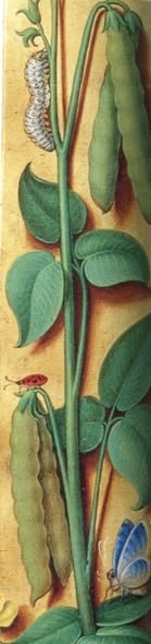 Pour les haricots présents dans l'herbier des Grandes Heures d'Anne de Bretagne, il est possible que ce soit cette variété de "Phaseolous vulgaris, "rare butin honnête des conquistadors", acclimatée comme nouveauté dans les jardins tourangeaux.