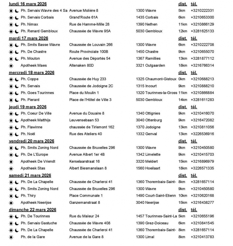 Share 09h15 17 mars 2026 GARDES PHARMACEUTIQUES DE LA SEMAINE Lien permanent 0 commentaire 0 commentaire