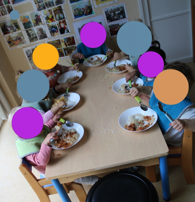 Le repas fait partie intégrante du projet d’accueil : il s’agit d’un temps de découverte, de partage et de plaisir, vécu dans un cadre bienveillant et en respectant le rythme de chaque enfant.