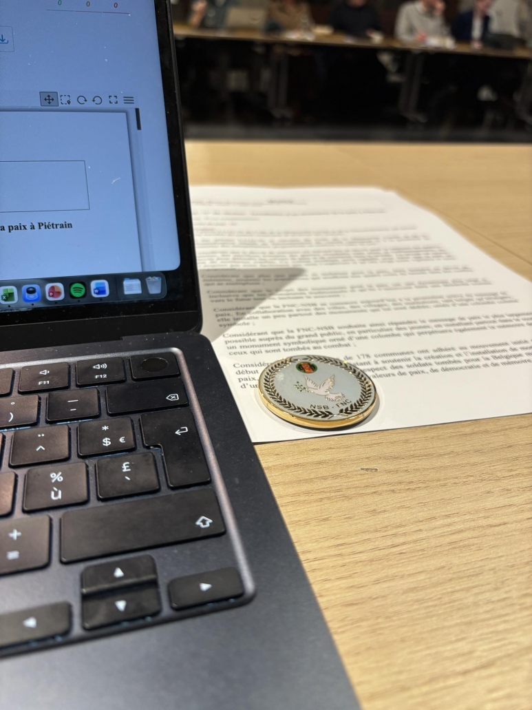 Au nom de Jodoigne en Mouvement, Joris Vandendooren a fait voter à l’unanimité le conseil communal de la Ville de Jodoigne, pour la création d’un monument de la paix à Pietrain. Initié par la Fédération Nationale des Combattants, cette initiative fait le pont entre le souvenir des soldats qui se sont battus pour la liberté et l’importance de chérir la démocratie aujourd’hui et demain. Ce monument sera en pierre brute. Sans aucune fioriture. Ce sera un lieu de mémoire, de commémoration et de rencontre au cœur de Pietrain. Les prochaines étapes consisteront à impliquer tous les acteurs locaux: école, cercle historique, FNC, centre culturel, conseil des enfants,… pour rendre le projet concret d’ici le 11 novembre Le monument de la paix sera orné d’une <img class="xz74otr x15mokao x1ga7v0g x16uus16 xbiv7yw" src="https://static.xx.fbcdn.net/images/emoji.php/v9/tba/1/16/1f54a.png" alt="