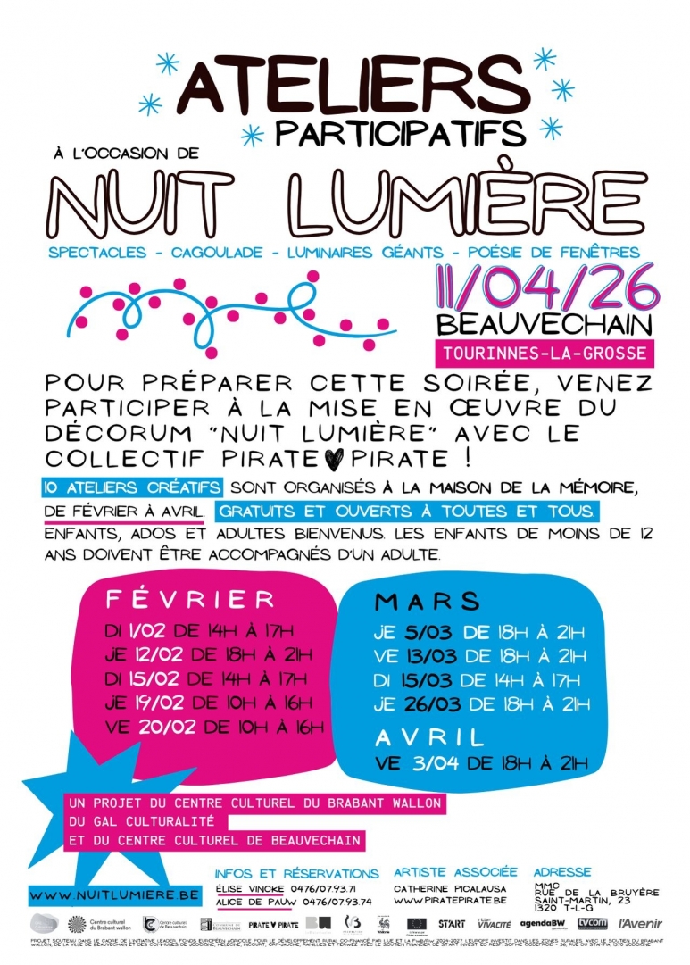 ne manquez pas aujourd'hui le dernier atelier préparatif avant la Nuit Lumière, une fête spectaculaire qui se déroulera le 11 avril sur les hauteurs de Tourinnes.