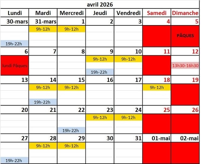 Quand ça se met pour vous et votre agenda, (matinée, soirée, samedi matin, dimanche après-midi) pour venir 1x, pour revenir, pour découvrir, voir si cela vous plait...
