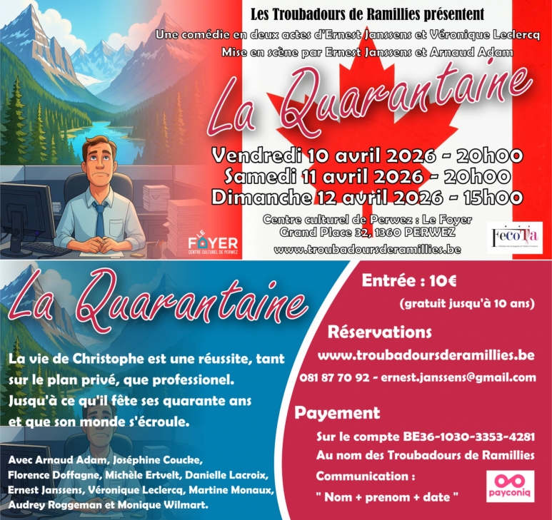 Nous jouerons "La Quarantaine", une comédie en deux actes écrite par Ernest Janssens et Véronique Leclercq. »