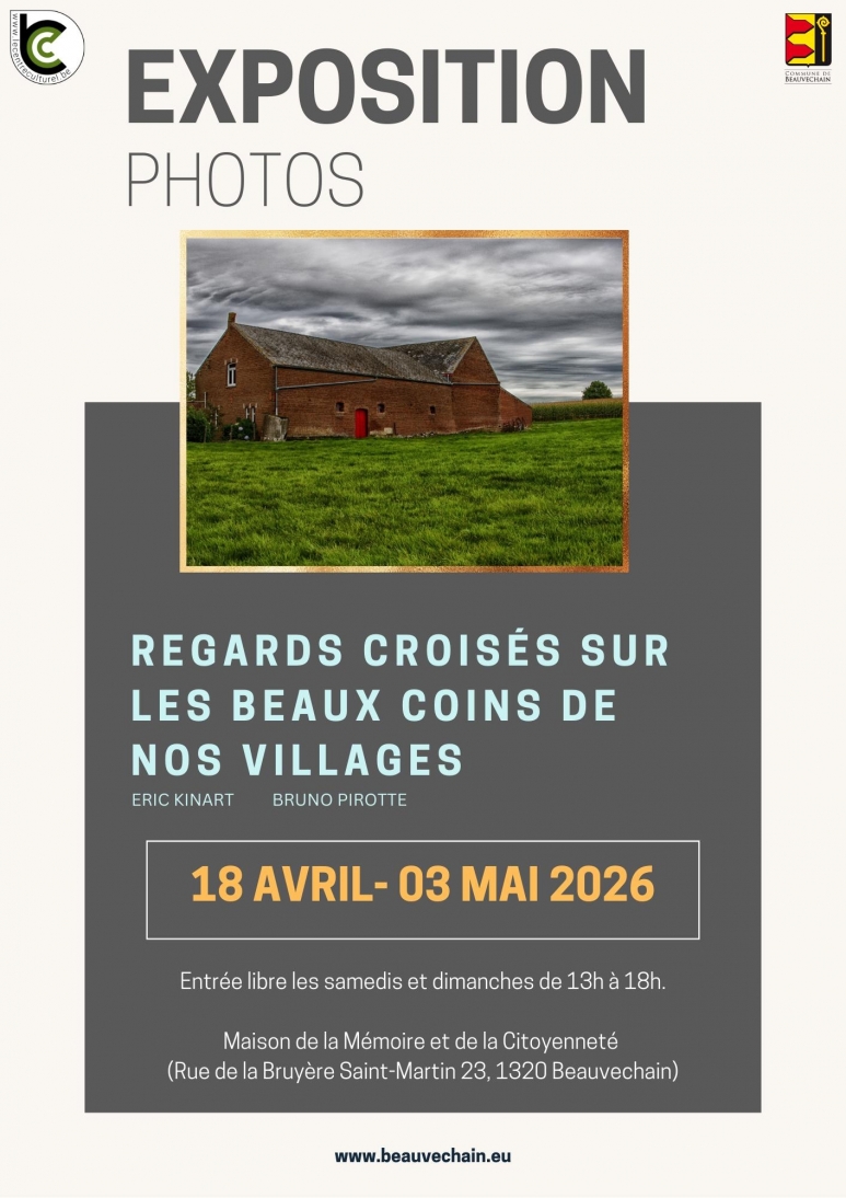 Lorsque Bruno Pirotte et Éric Kinart, deux photographes bien connus sur les terres de Beauvechain et particulièrement ancrés dans la Commune, ont proposé de venir exposer le fruit de leur pérégrination photographique au travers des « beaux coins de nos villages », nous n’avons pas hésité une seule seconde.