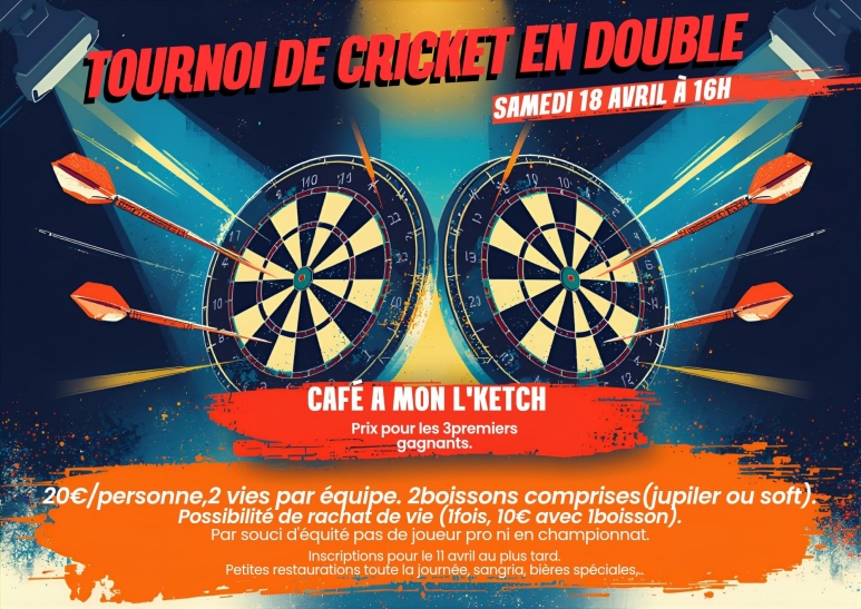 TOURNOI DE CRICKET EN DOUBLE, Ce Samedi 18 avril 2026 dès de 16H au Café À mon L'Ketch