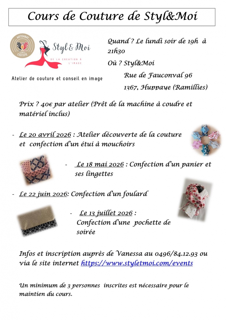 Inscris-toi dès maintenant et laisse libre cours à ta créativité ! Chez Styl&Moi, la couture devient un véritable plaisir !