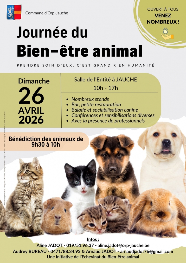Share 08h05 22 avril 2026 ORP-JAUCHE : JOURNEE DU BIEN-ËTRE ANIMAL Lien permanent 0 commentaire 0 commentaire