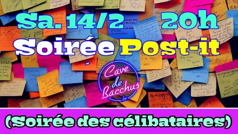 Le samedi 14 février à partir de 20h, ce sera l’occasion de faire des rencontres et d’échanger entre autre par le biais amusant de post-it. Vous pourrez aussi signifier vos demandes musicales au DJ par post-it !
