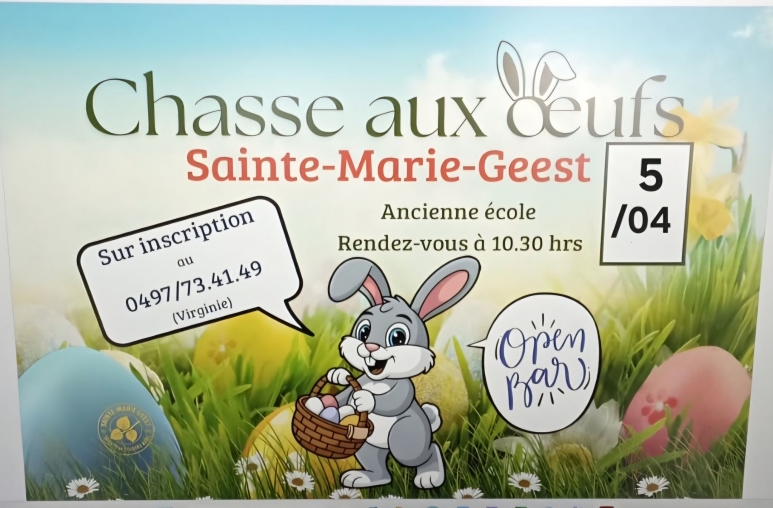 GRANDE CHASSE AUX ŒUFS 2026, ce  Samedi 4 avril 2026  Dans les jardins de la Résidence la Dame (4 rue de la Queue de Geest à Gérompont)