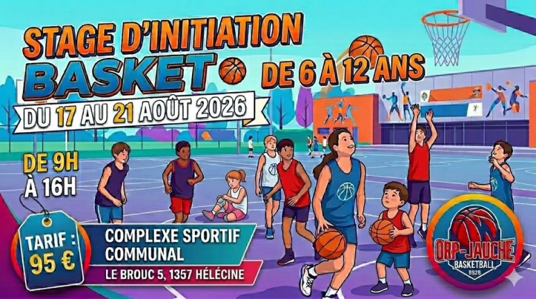 Stage d’initiation au basket via le B.C. d'Orp-Jauche Pour les enfants de 6 à 12 ans Du 17 au 21 août 2026