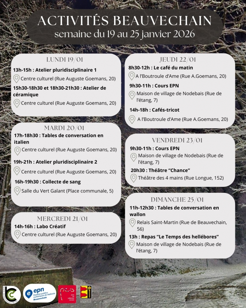 La reprise 2026 aura lieu ce lundi 26 janvier à 19h30, à la salle communale de Piétrebais.