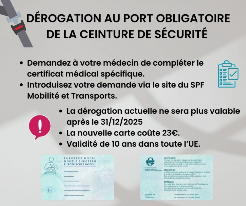 DEROGATION AU PORT DE LA CEINTURE DE SECURITE